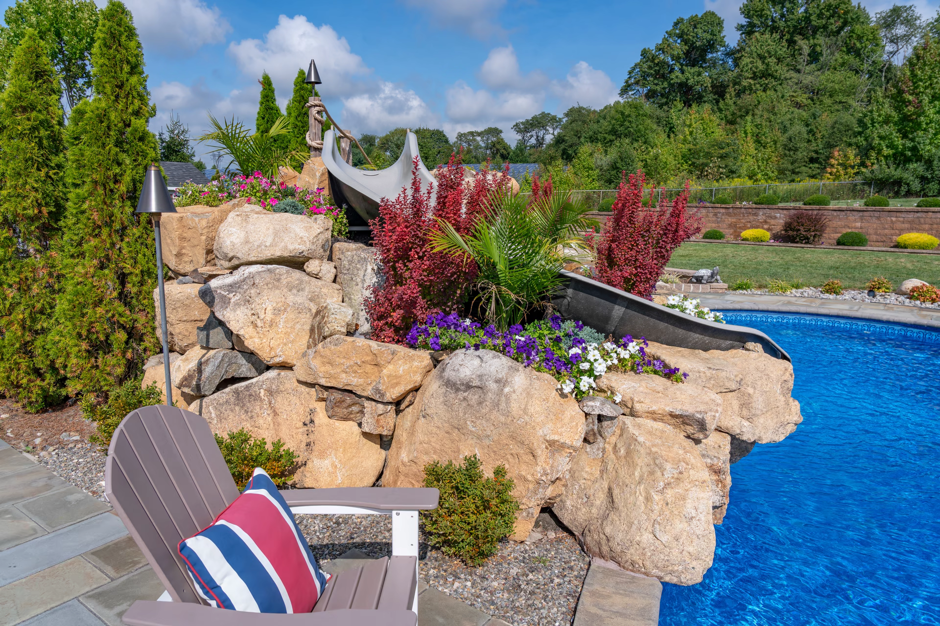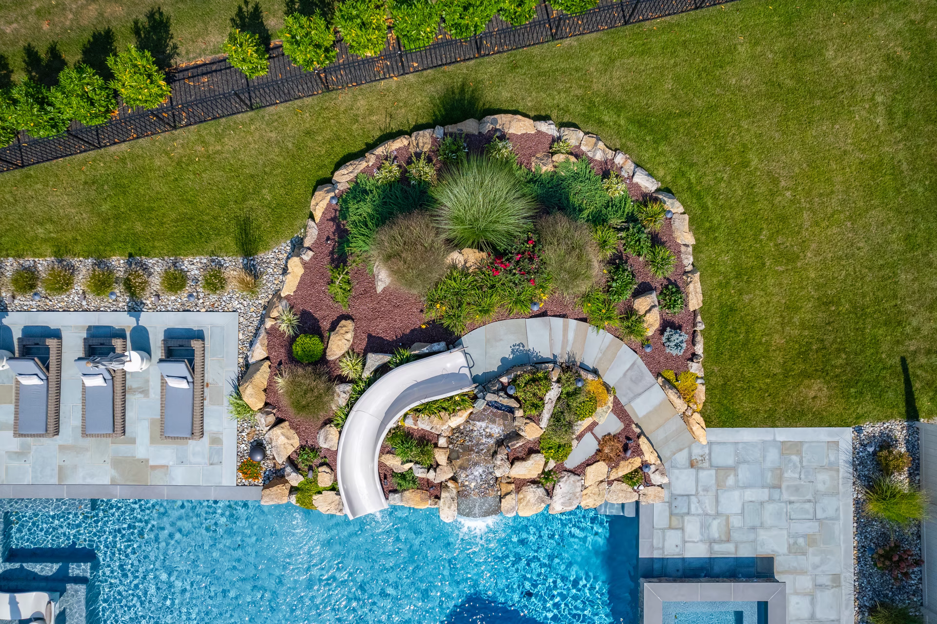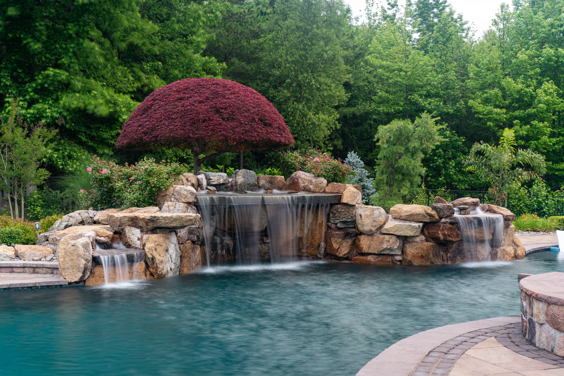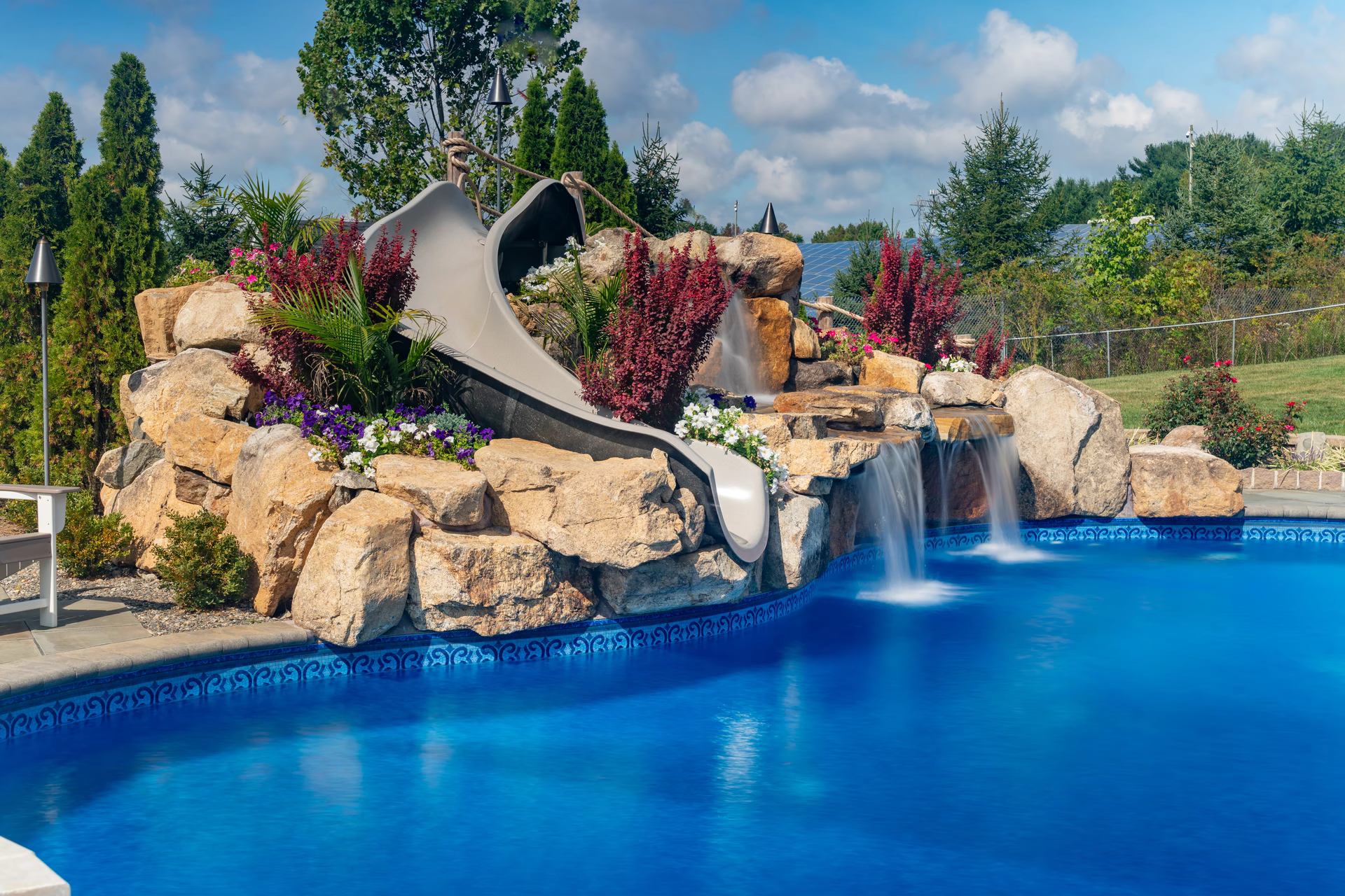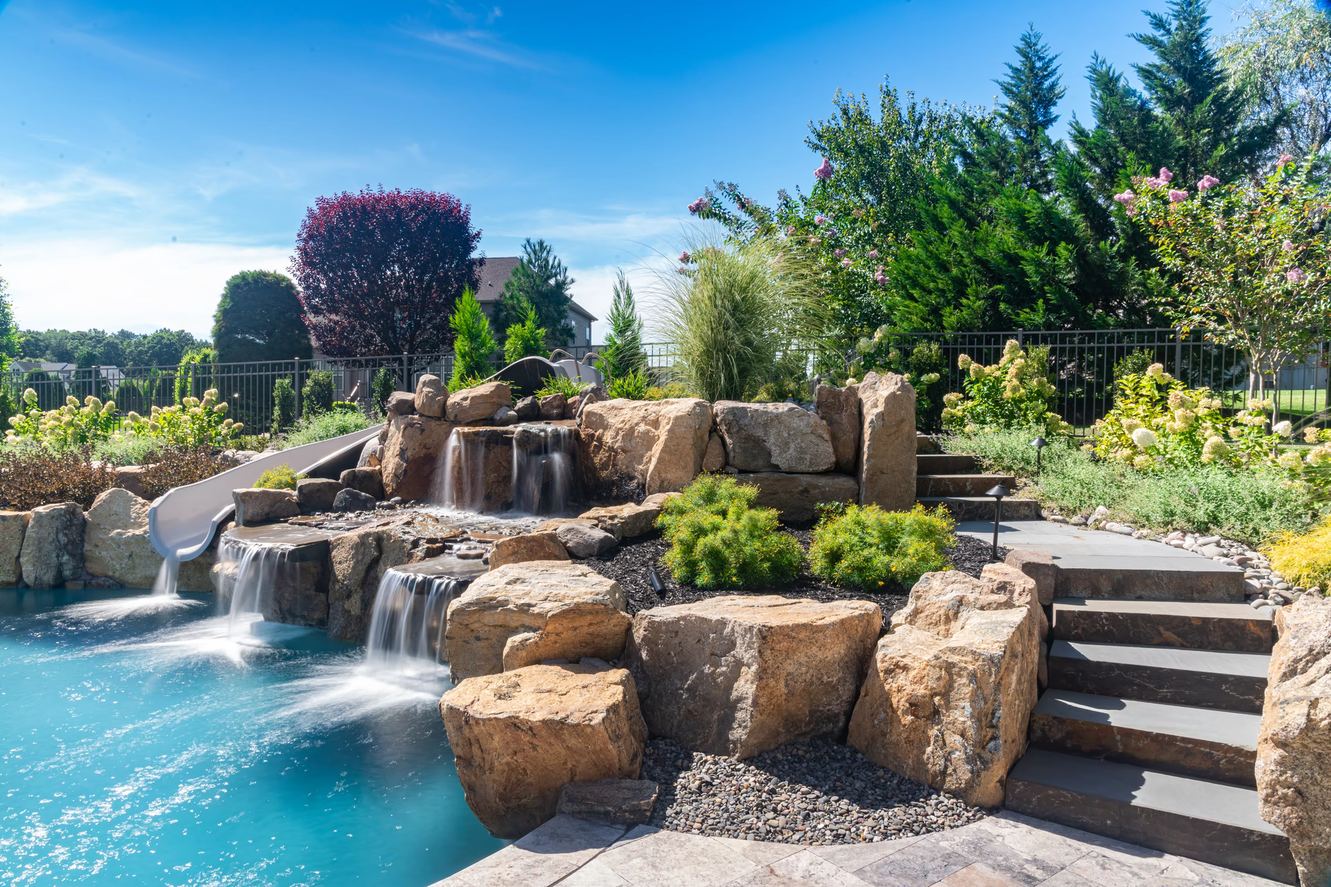 - Grotto Dimensions: 5′ Wide Waterfall Across Corner