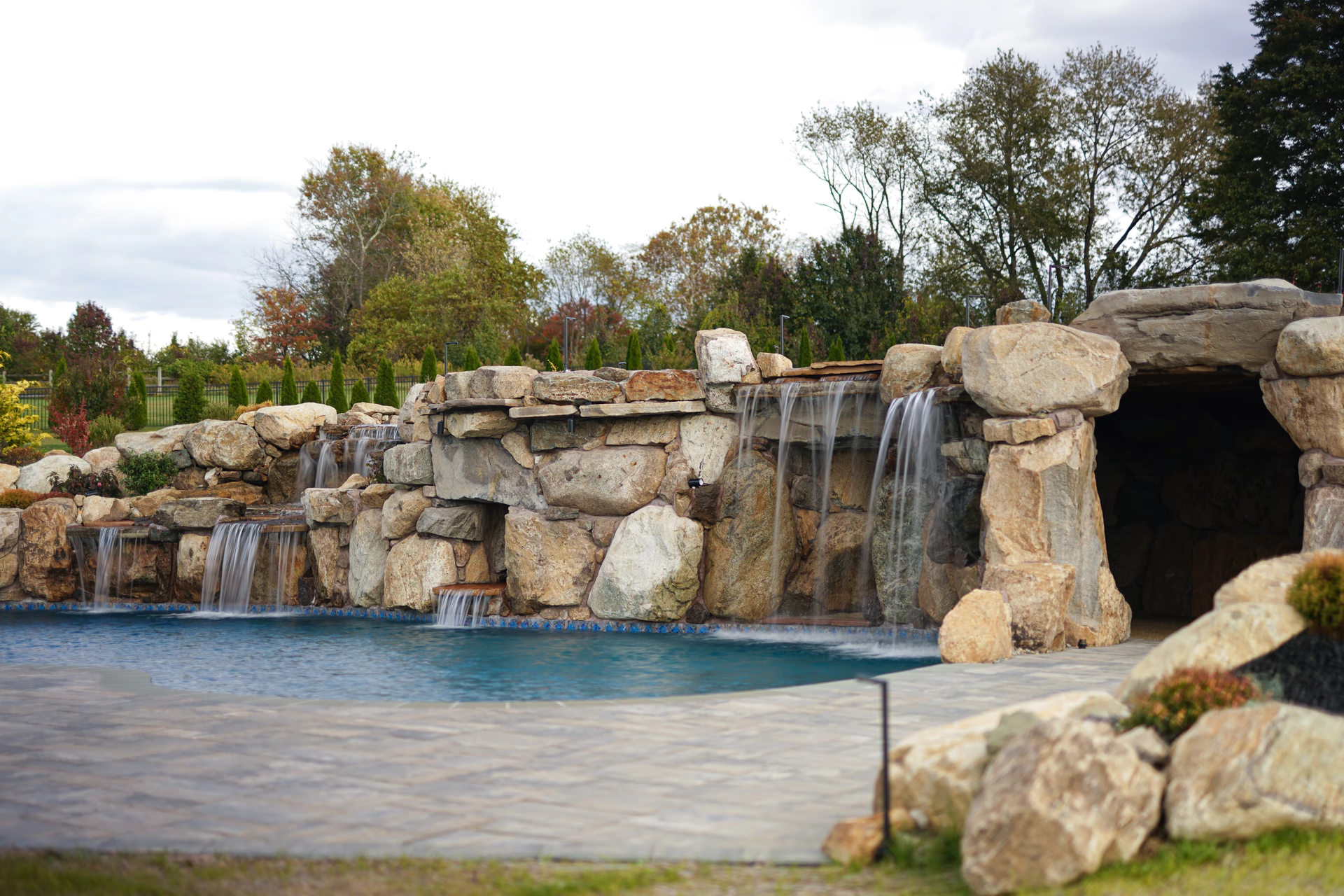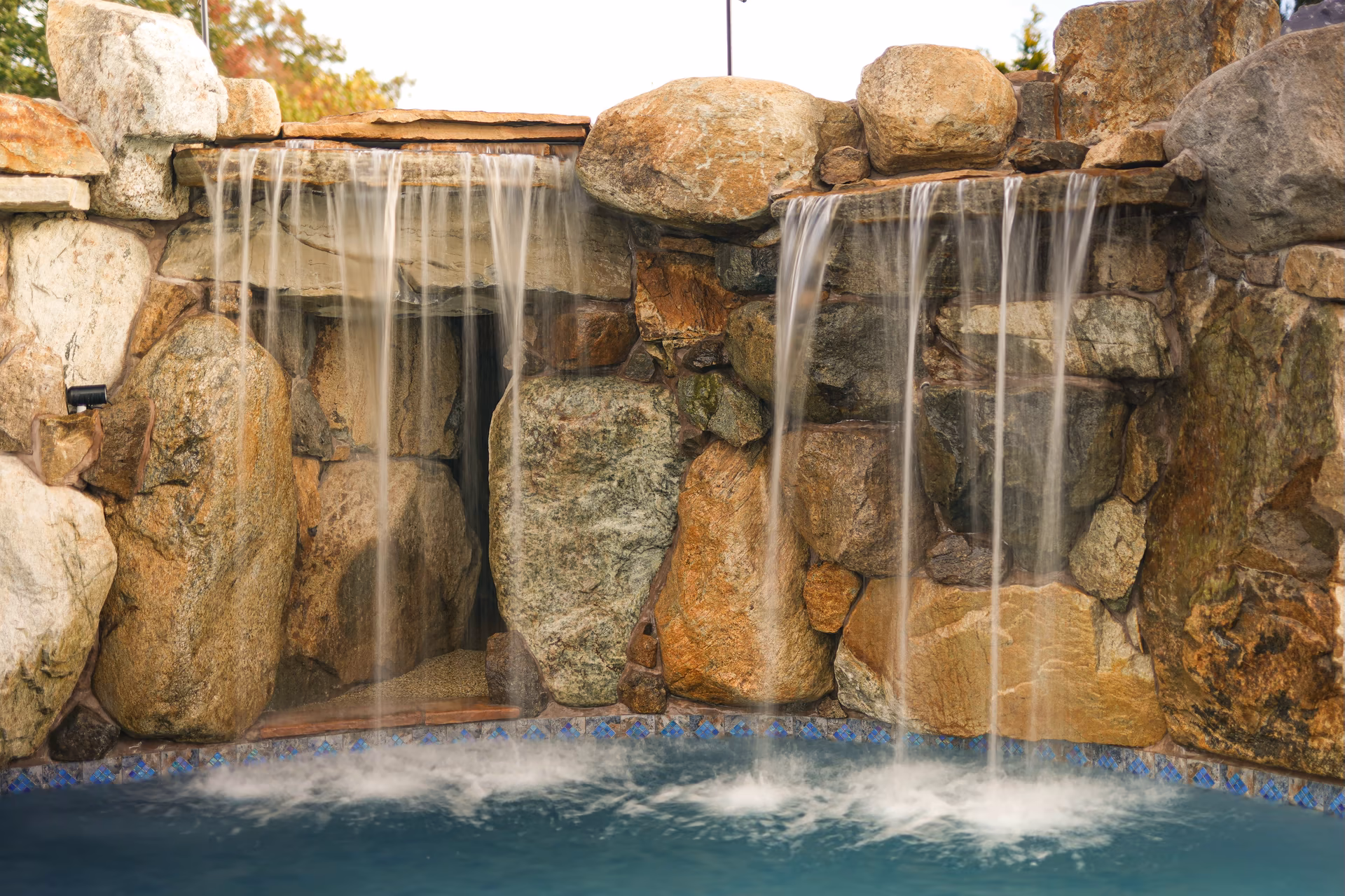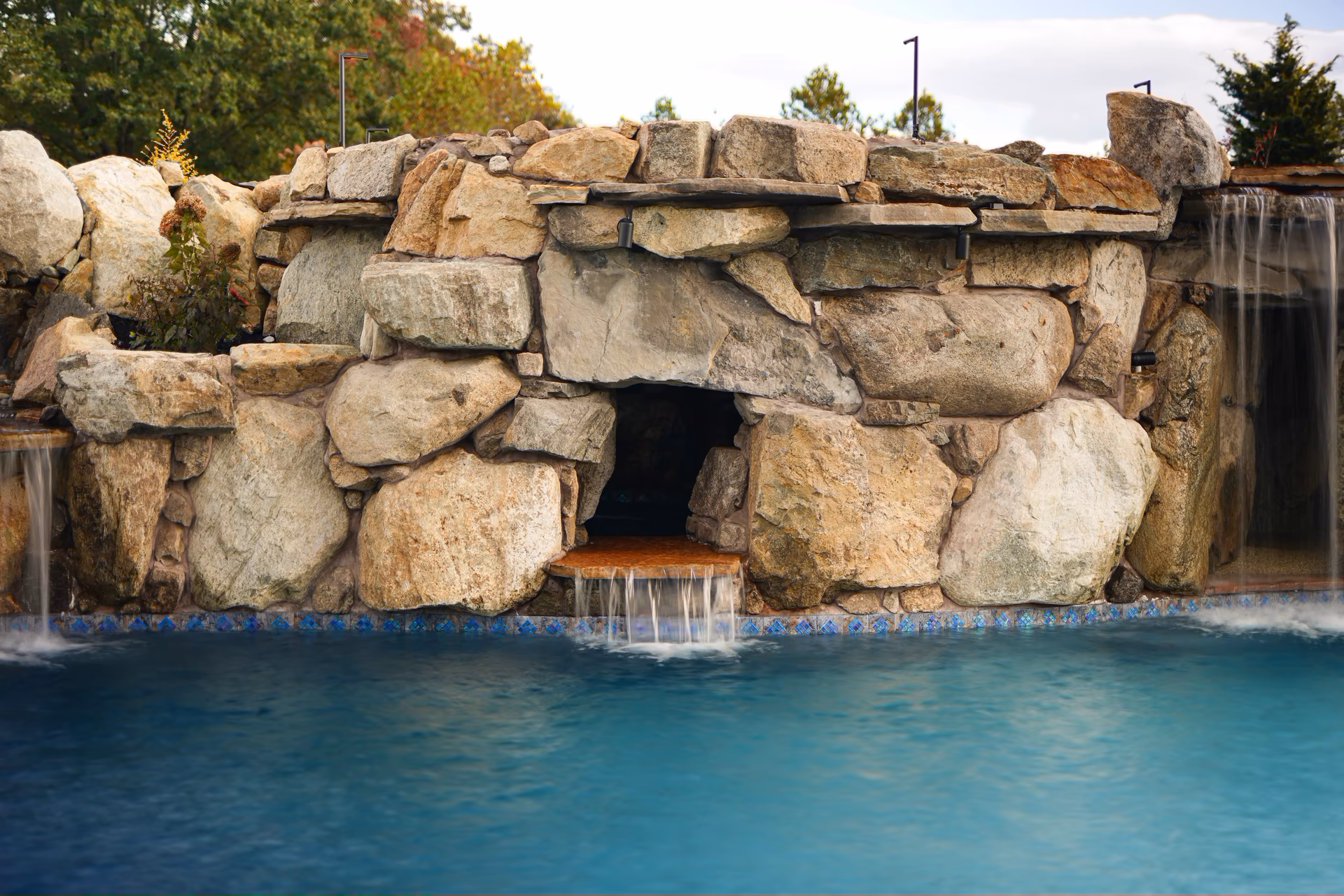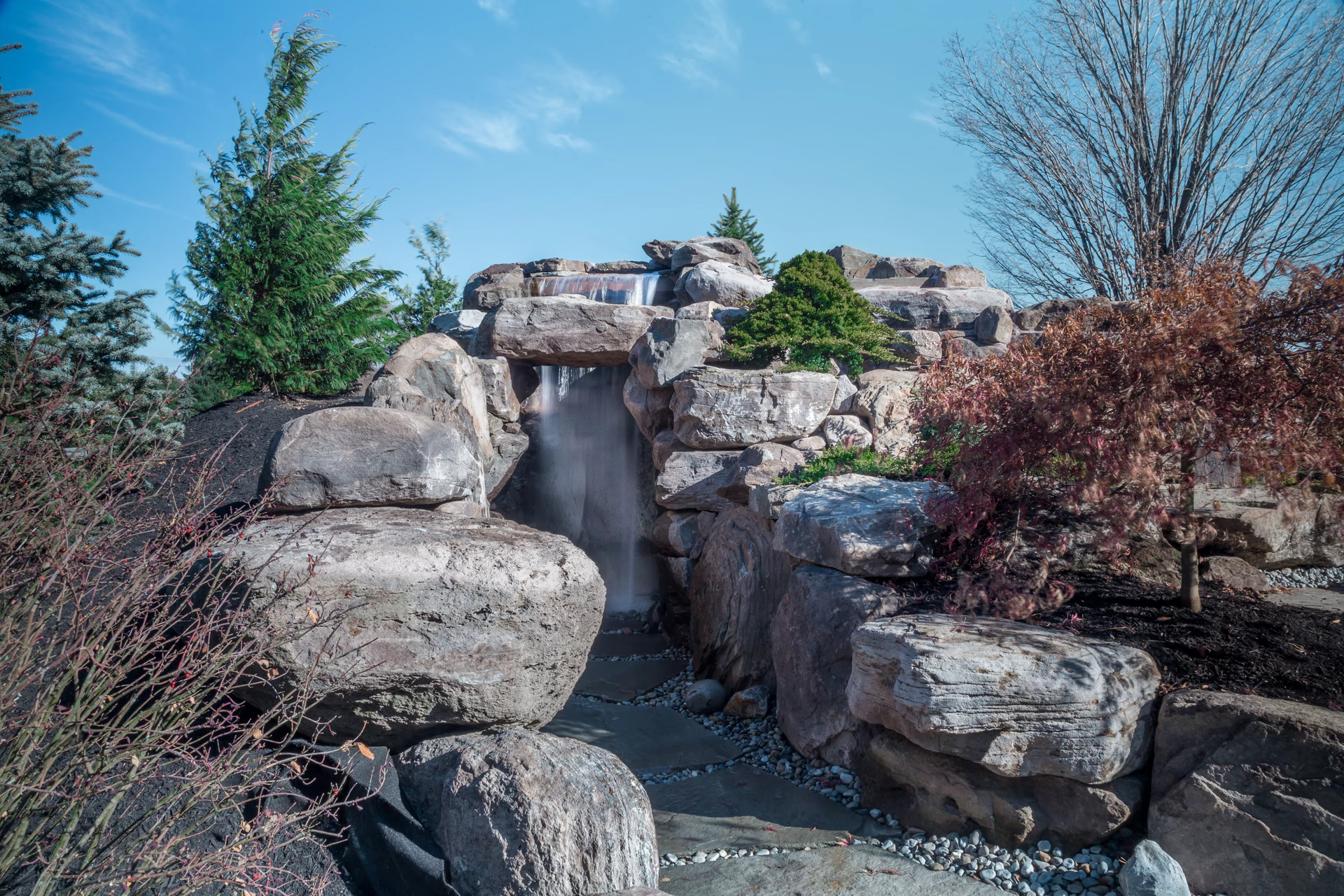 - Grotto Dimensions: Two-Tier Grotto 7′ High x 7′ Wide x 5′ Deep; Second Waterfall – Two-Tiered