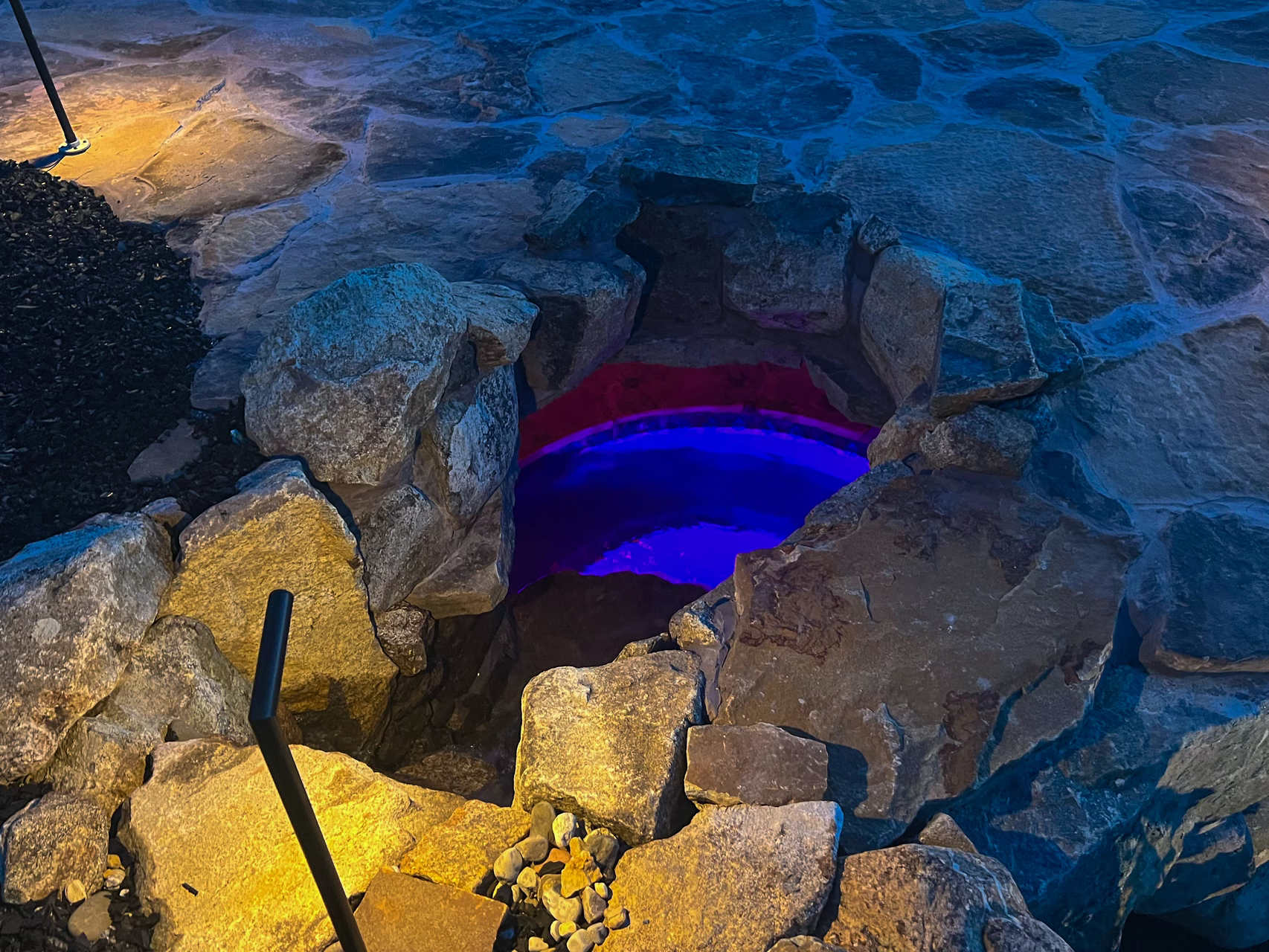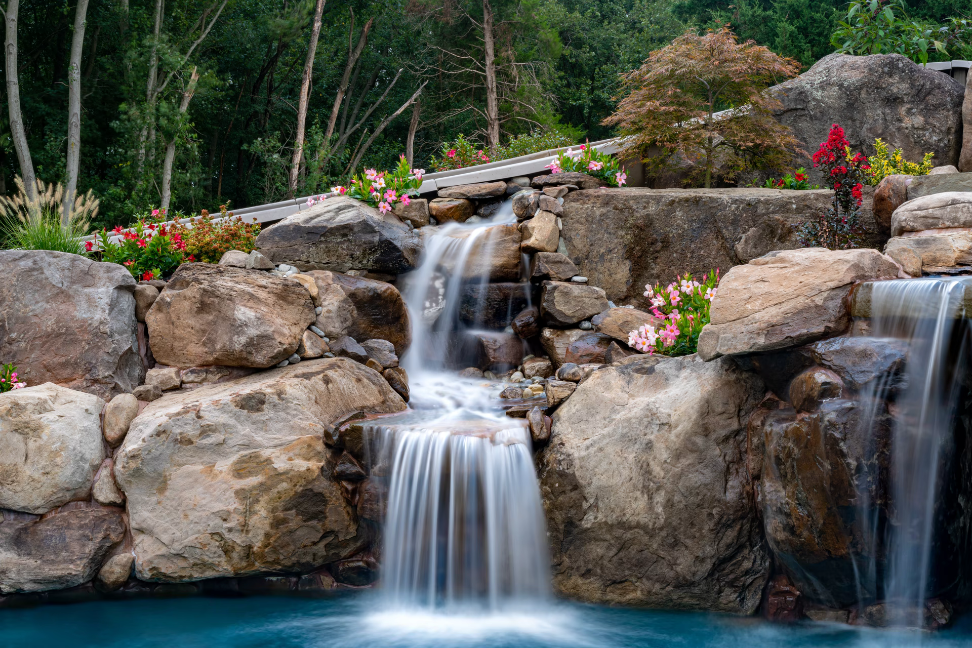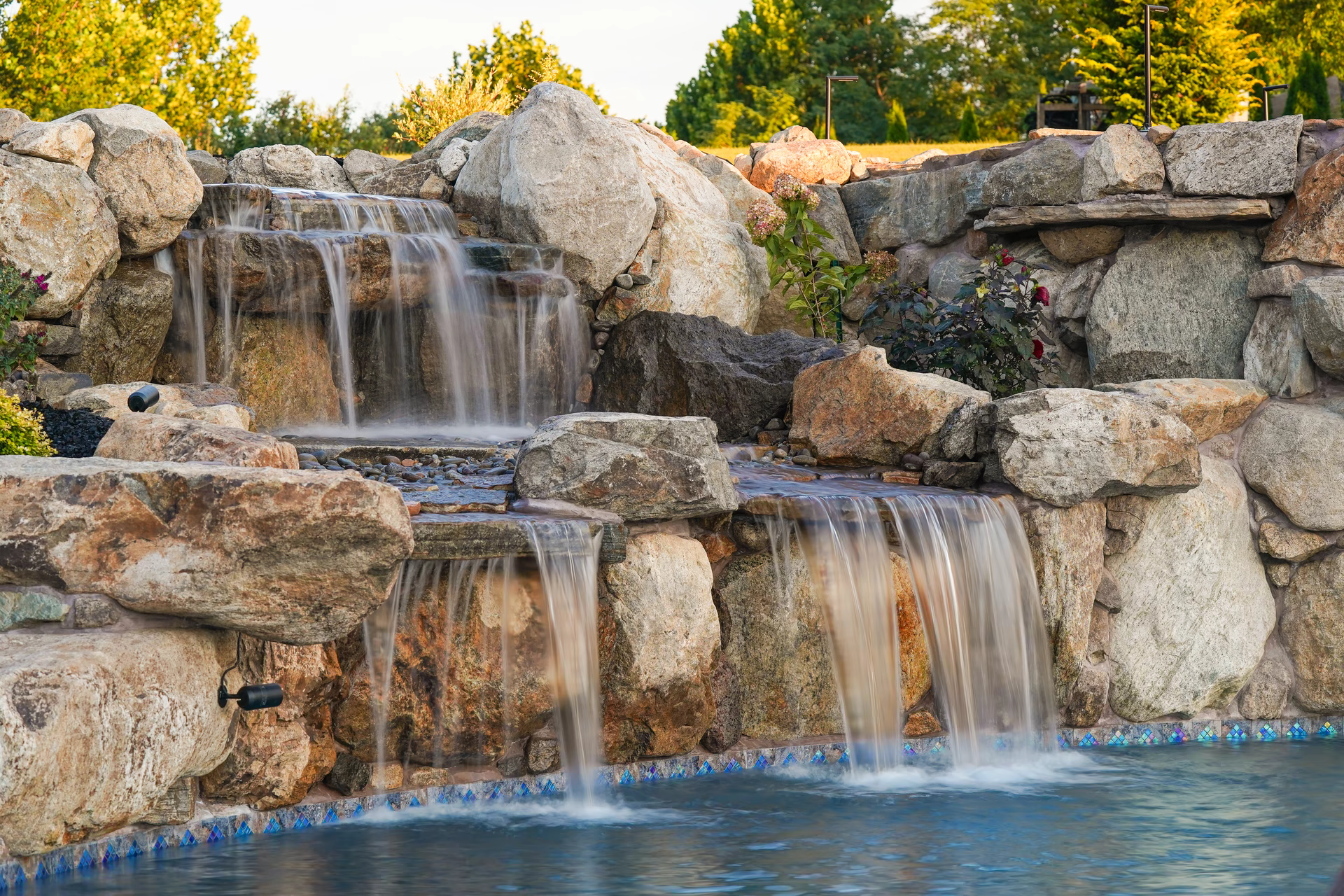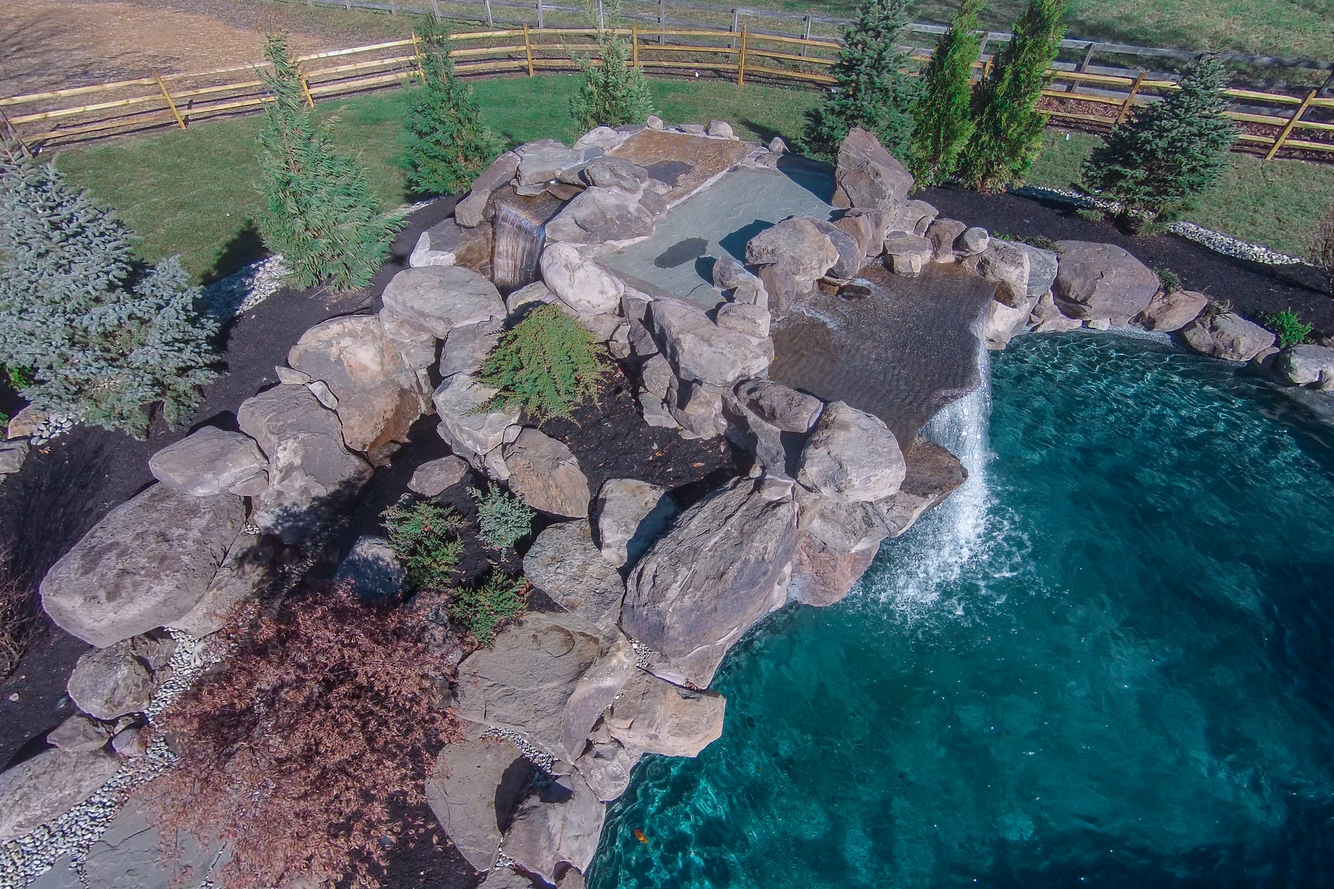- Grotto Dimensions: Two-Tier Grotto 7′ High x 7′ Wide x 5′ Deep; Second Waterfall – Two-Tiered