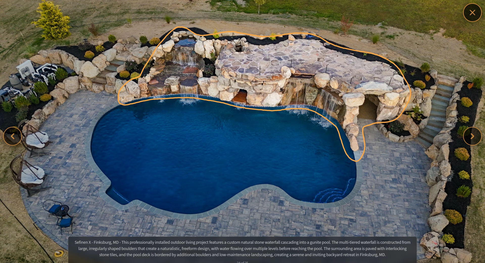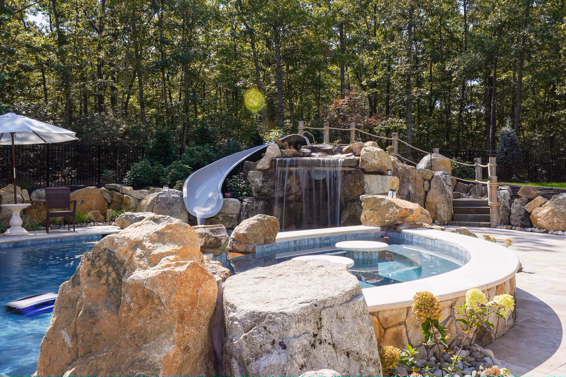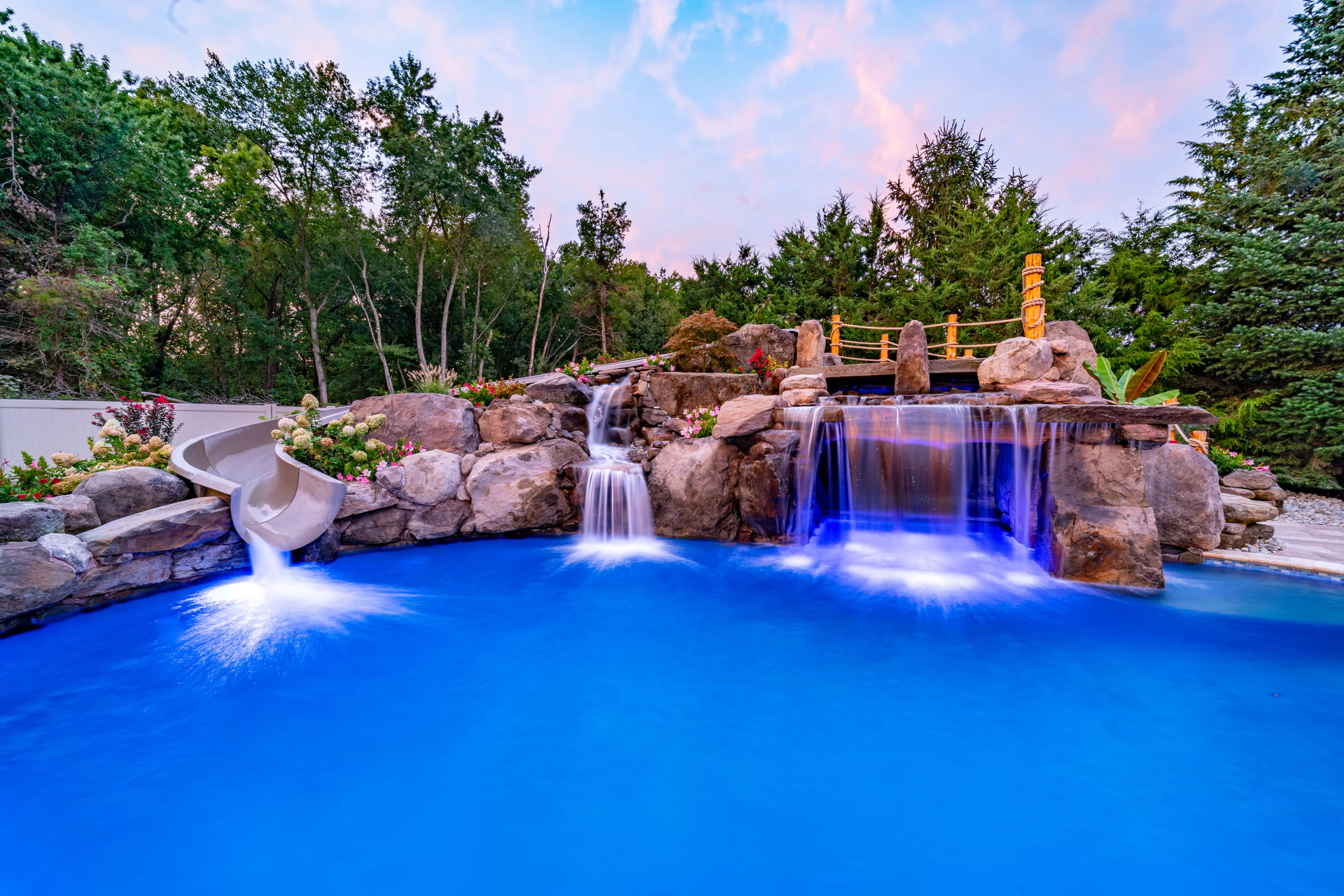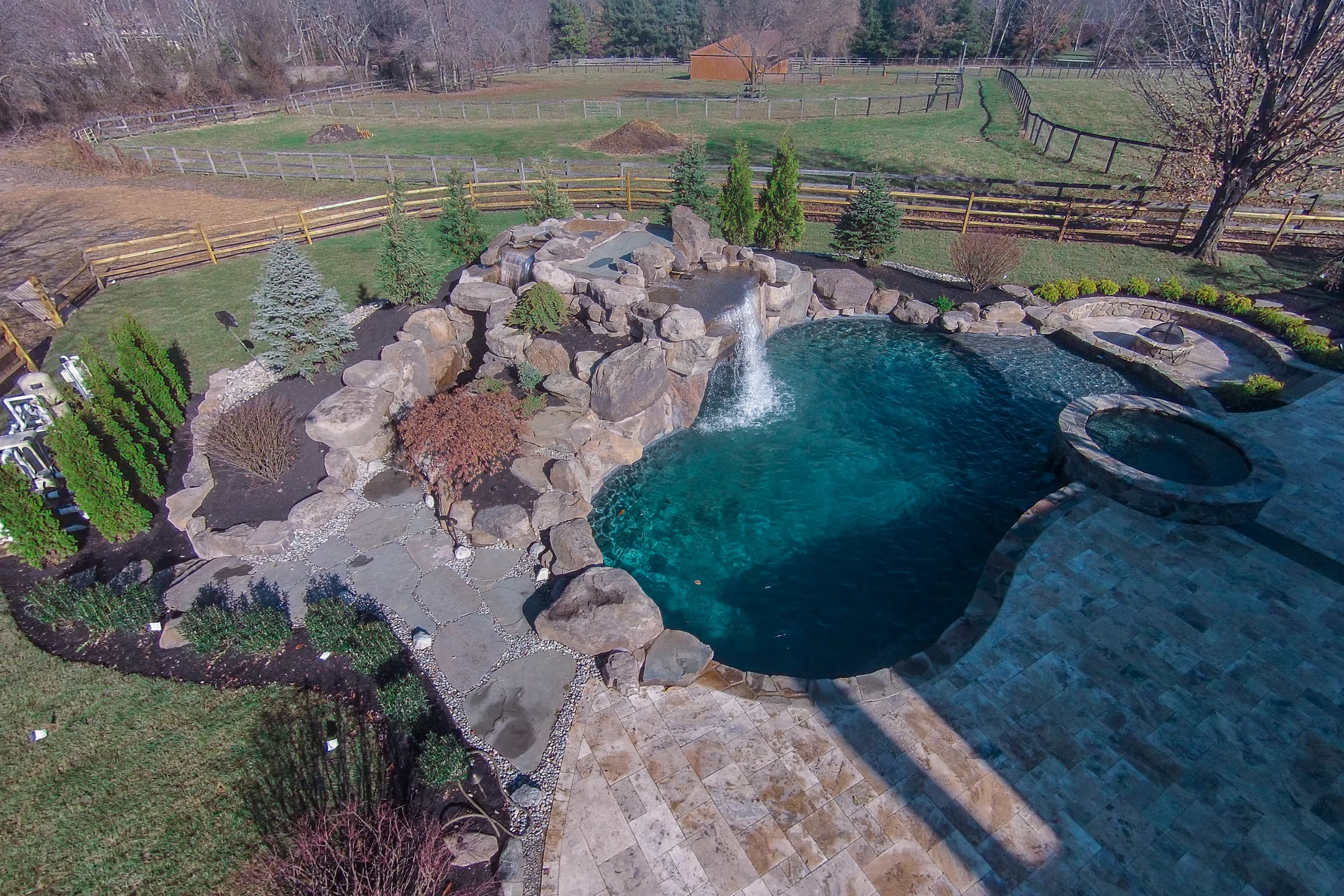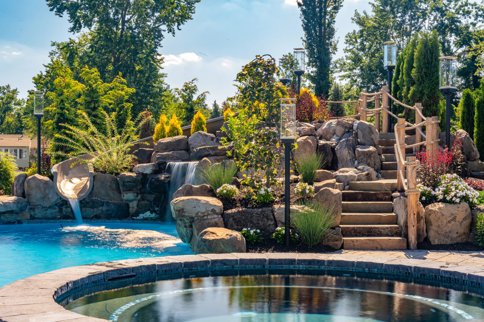 - Grotto Dimensions: Two-Tier Grotto 7′ High x 7′ Wide x 5′ Deep; Second Waterfall – Two-Tiered