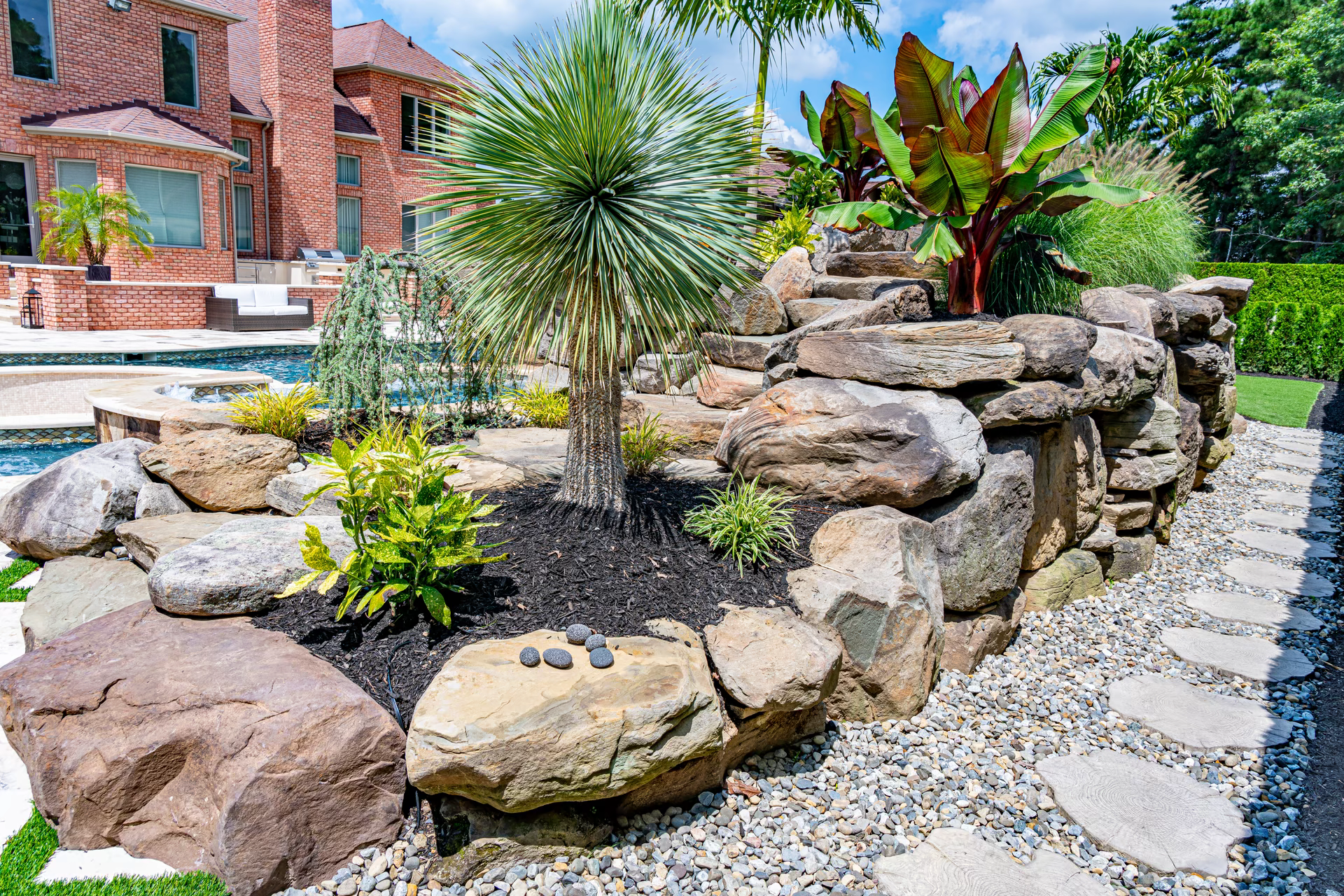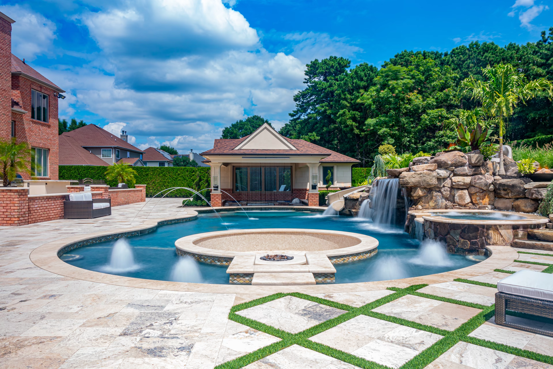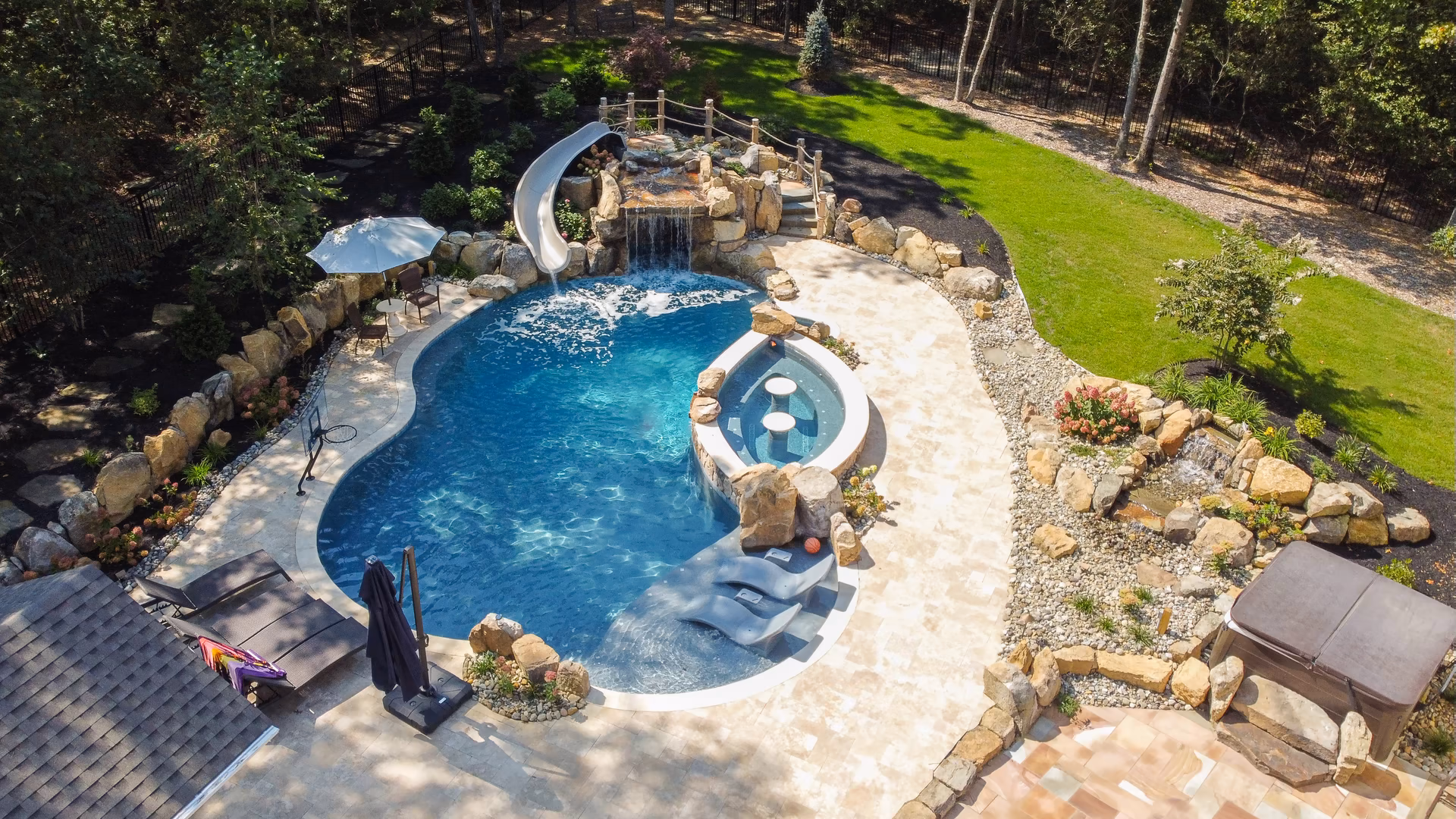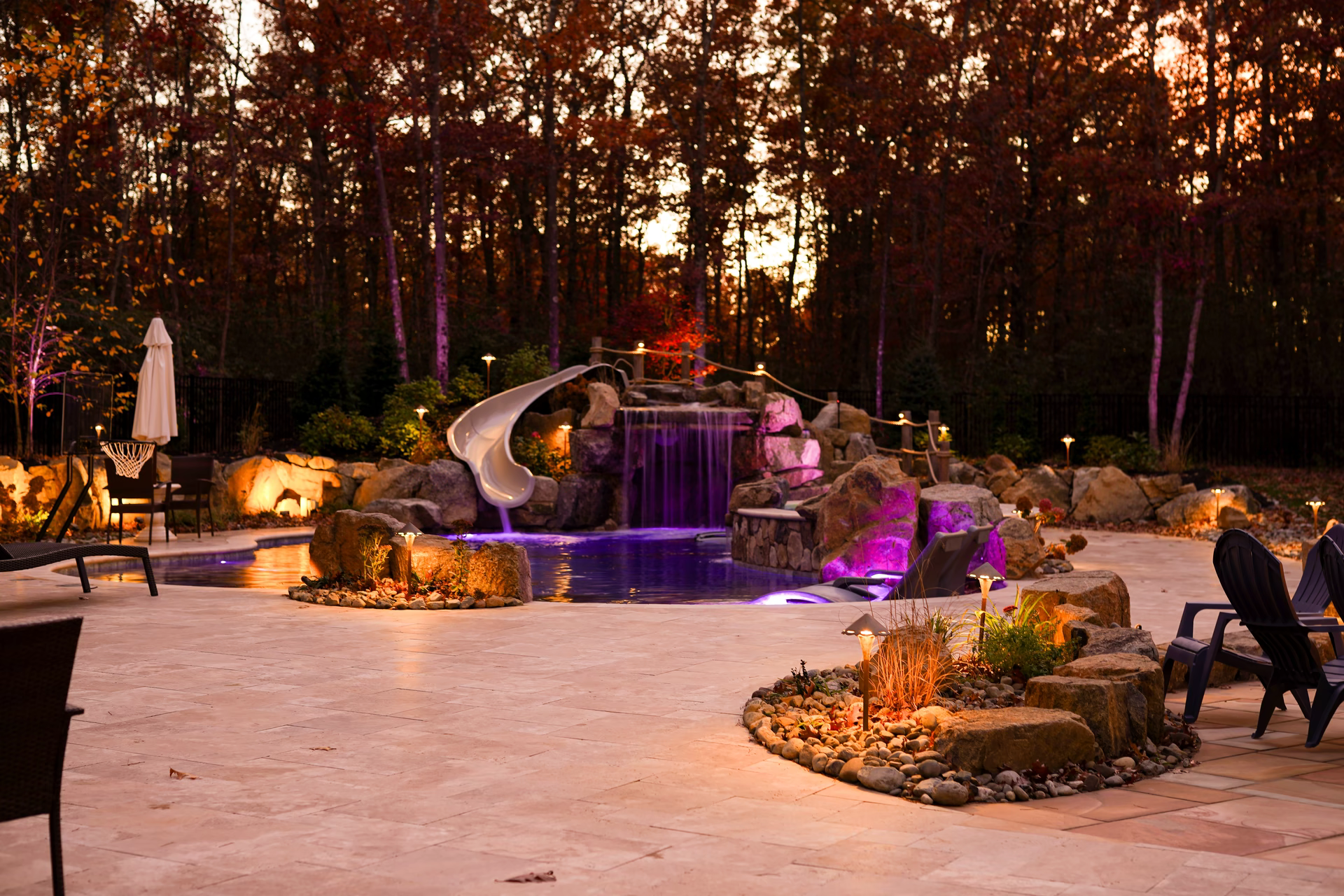 - Grotto Dimensions: Two-Tier Grotto 7′ High x 7′ Wide x 5′ Deep; Second Waterfall – Two-Tiered