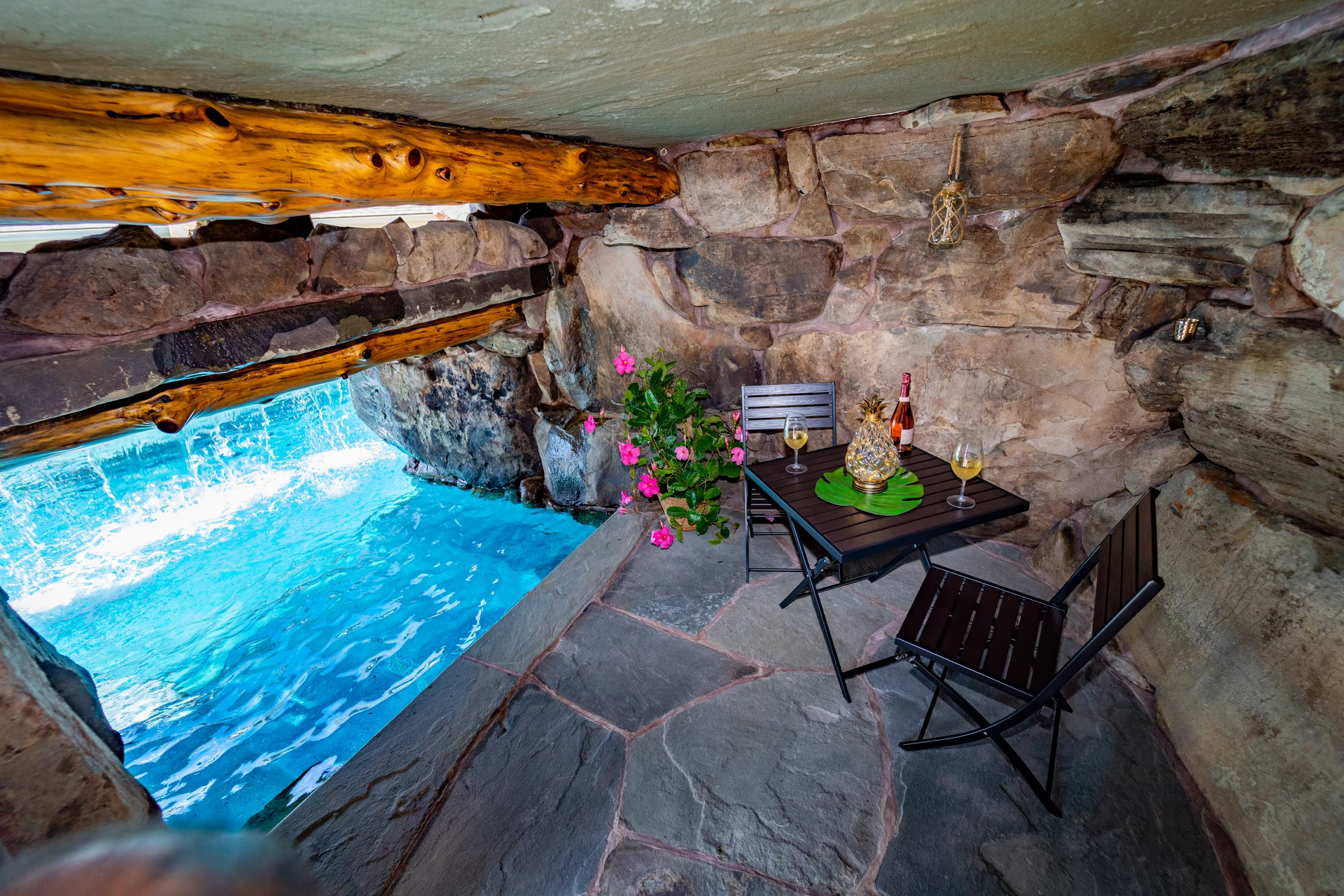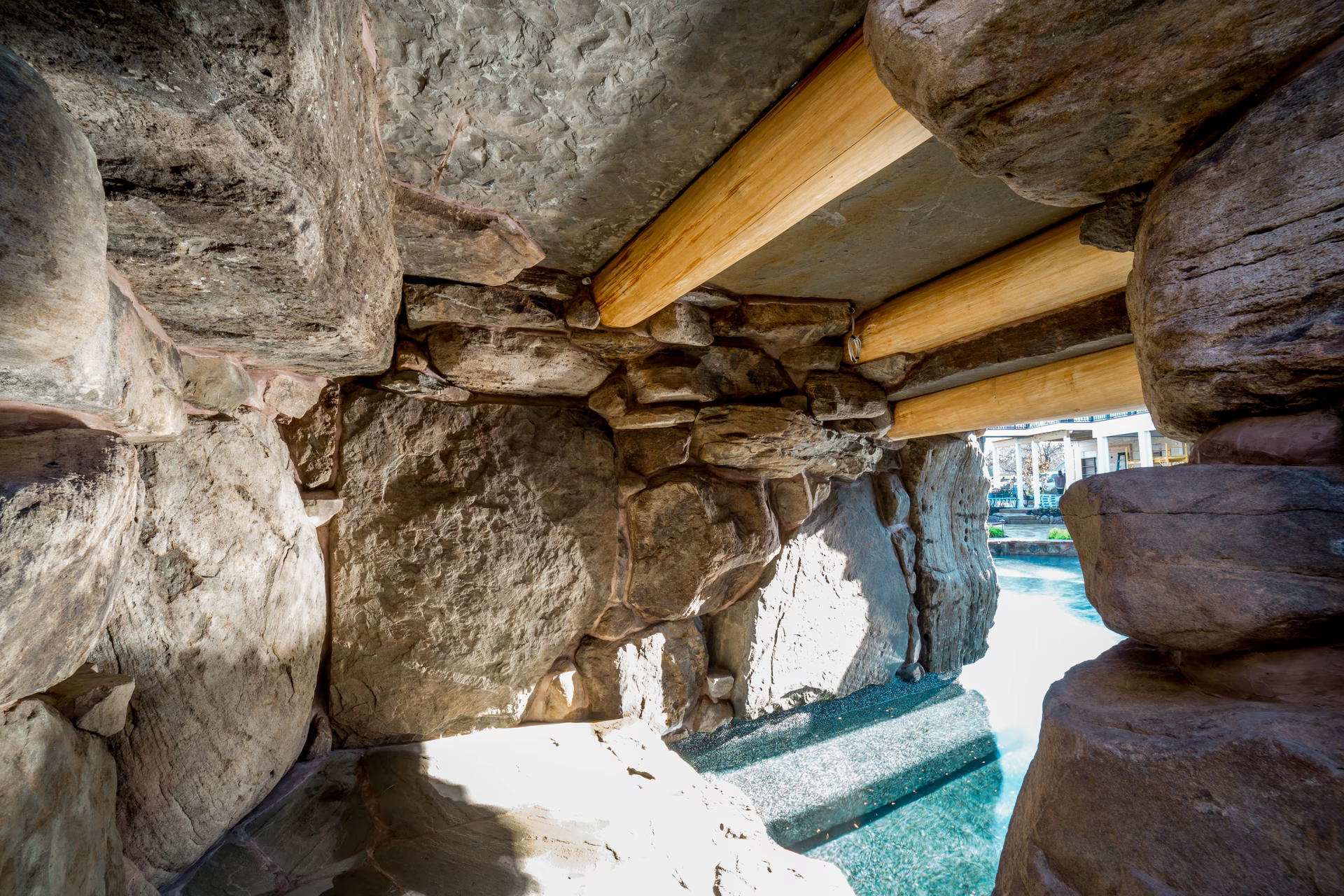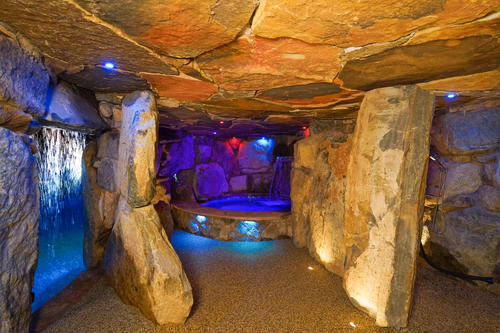 - Grotto Dimensions: Grotto -Two-Tier 8′ Wide x 16′ Deep Half Dry and Half Wet; Side Entrance, 6′ High Two-Tier Waterfall