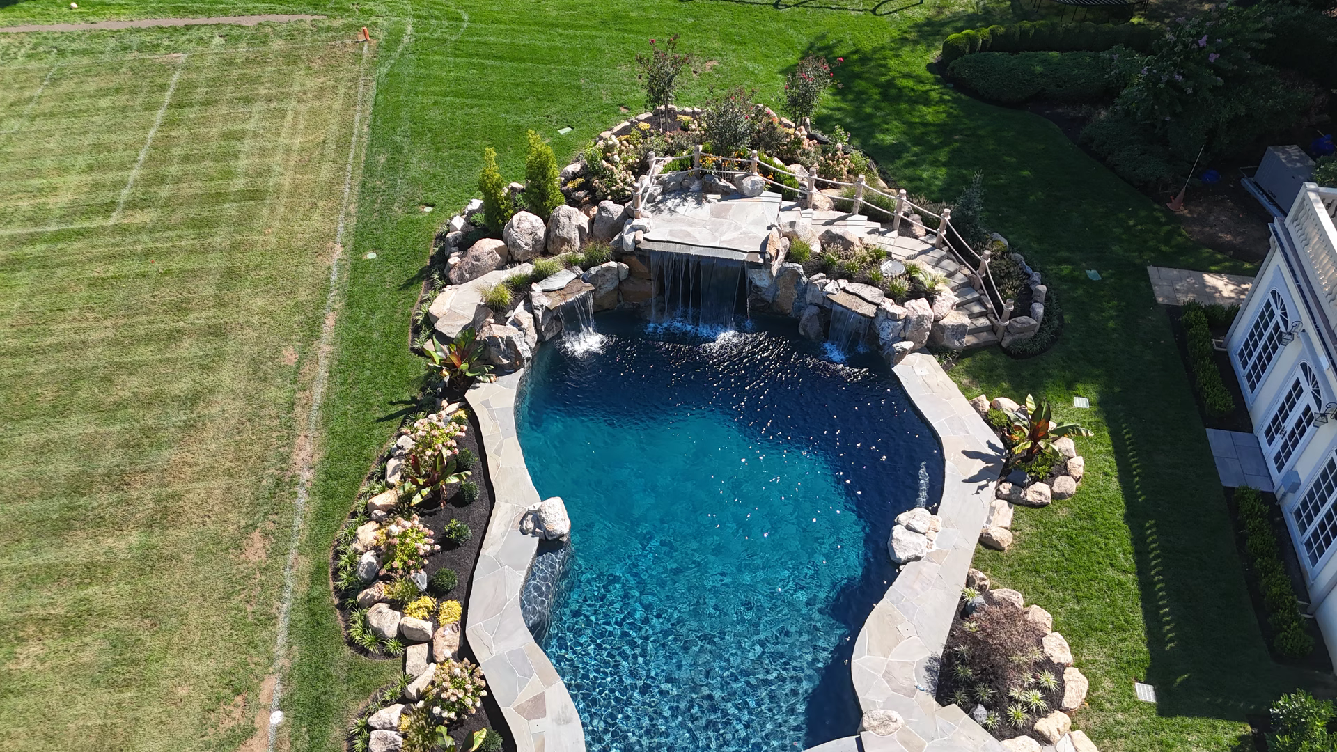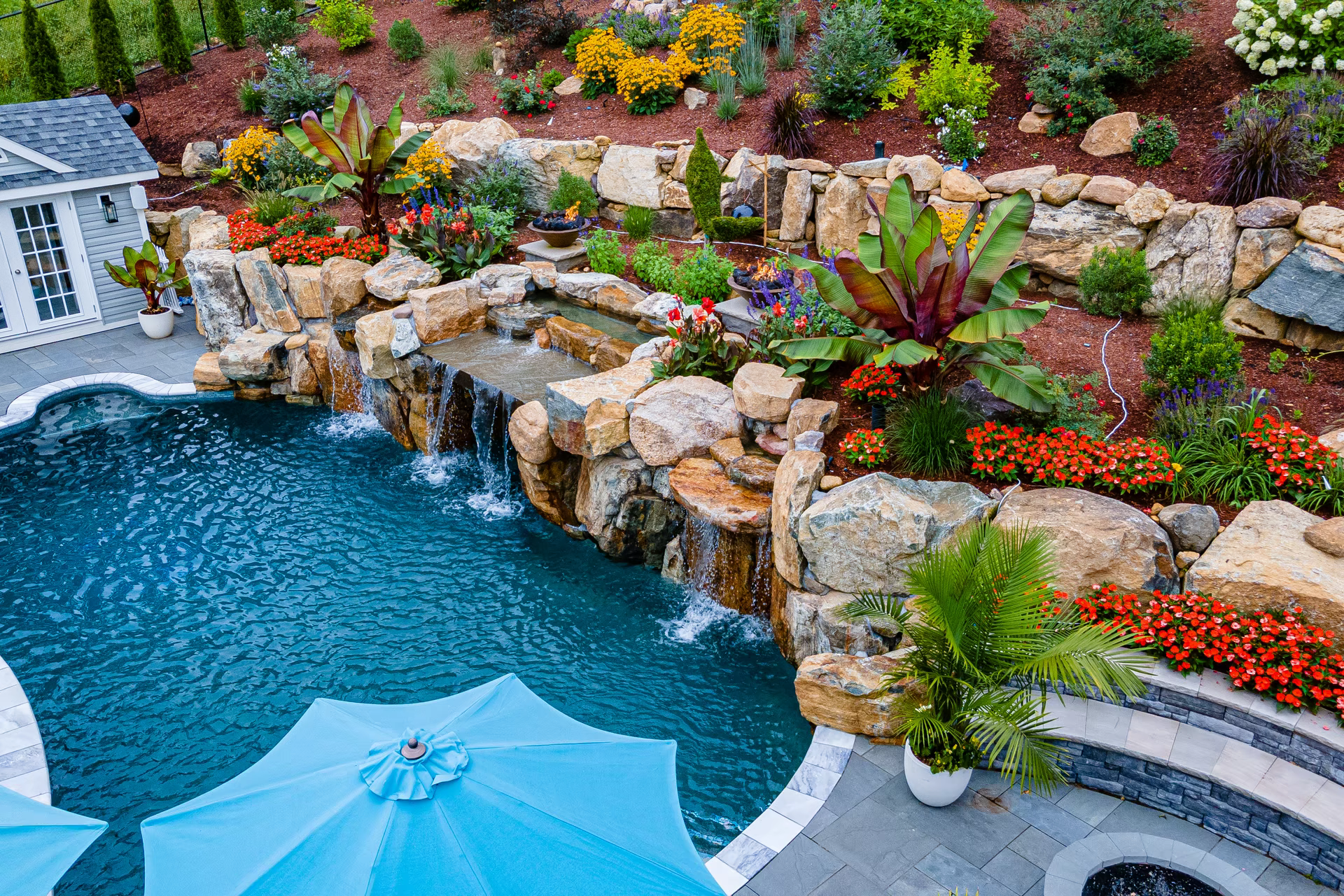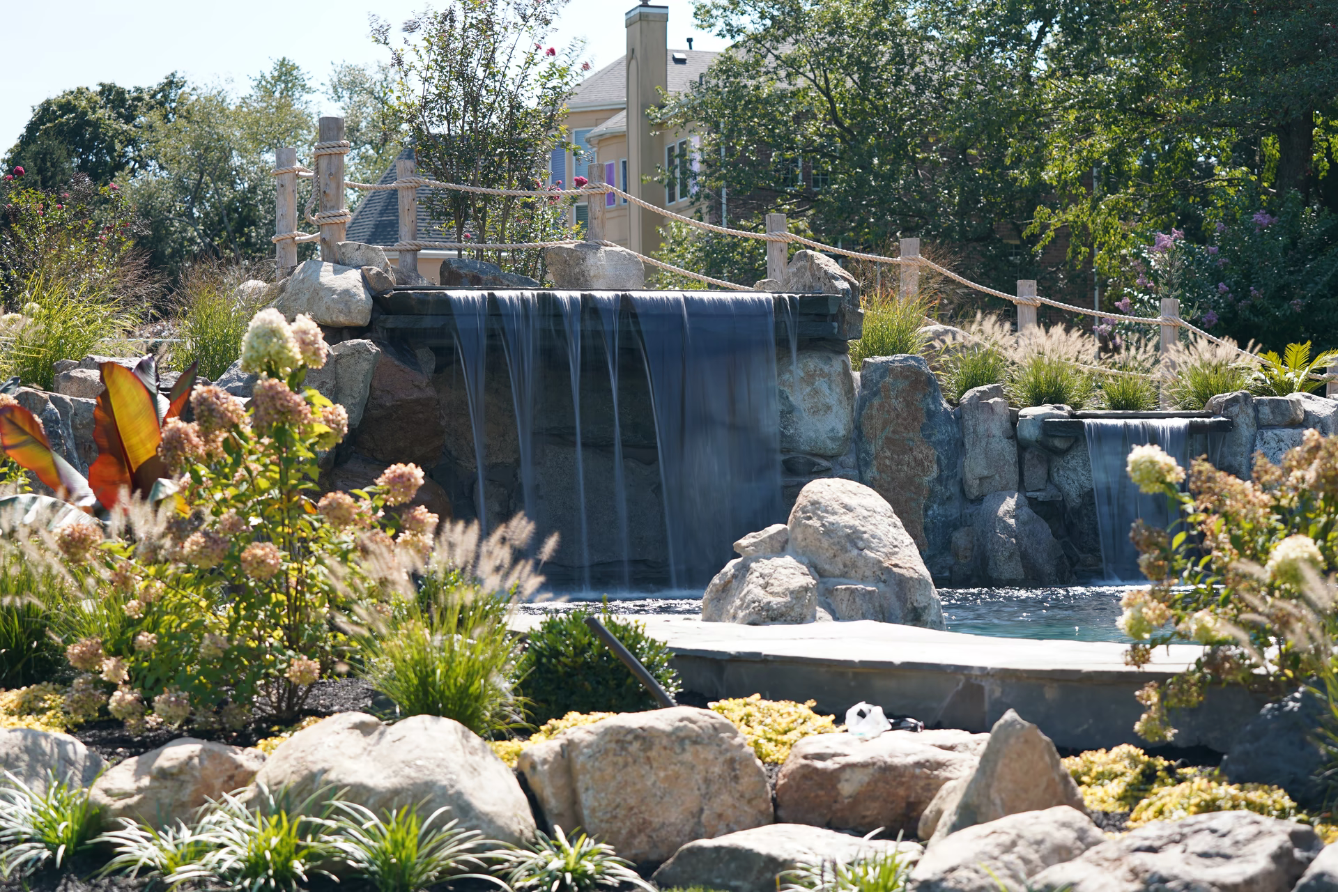 - Grotto Dimensions: 5′ Wide Waterfall Across Corner