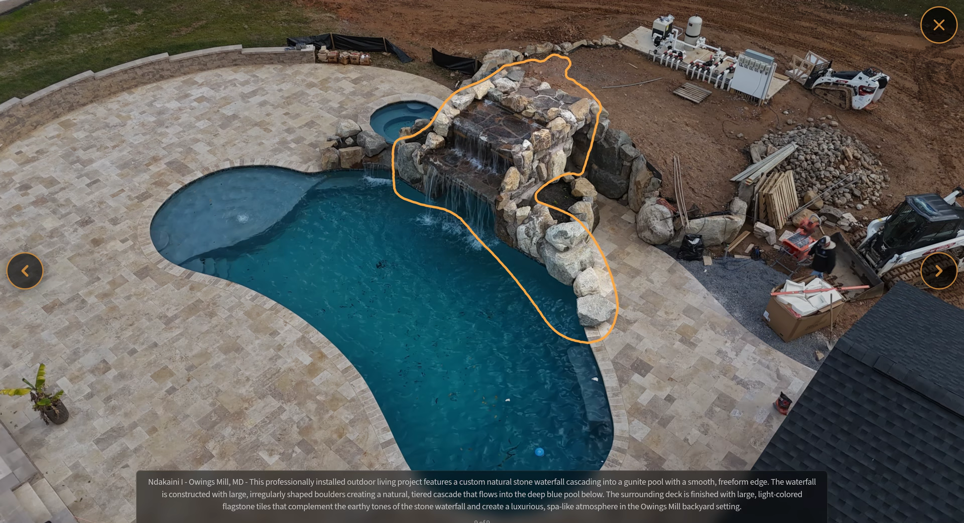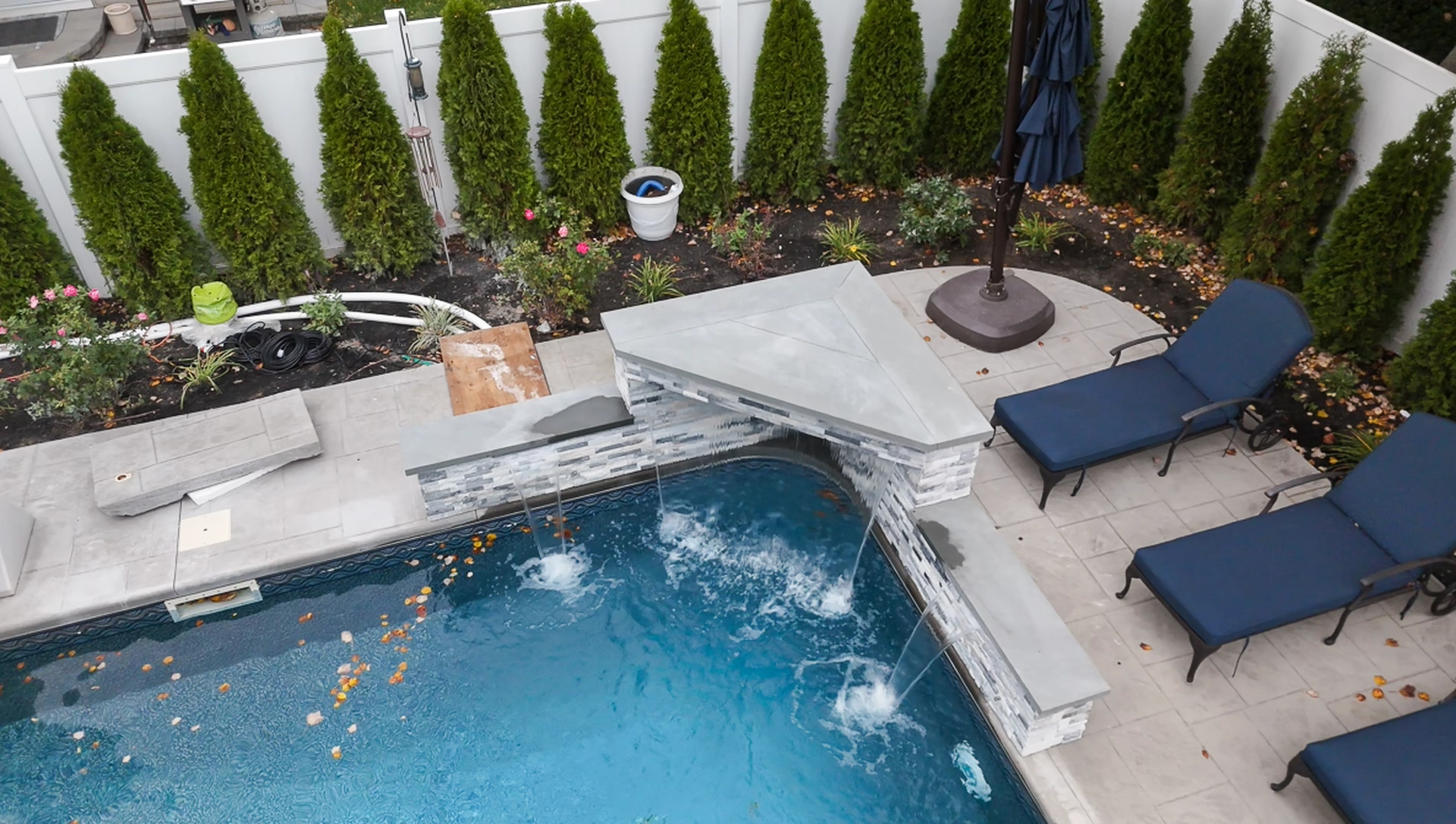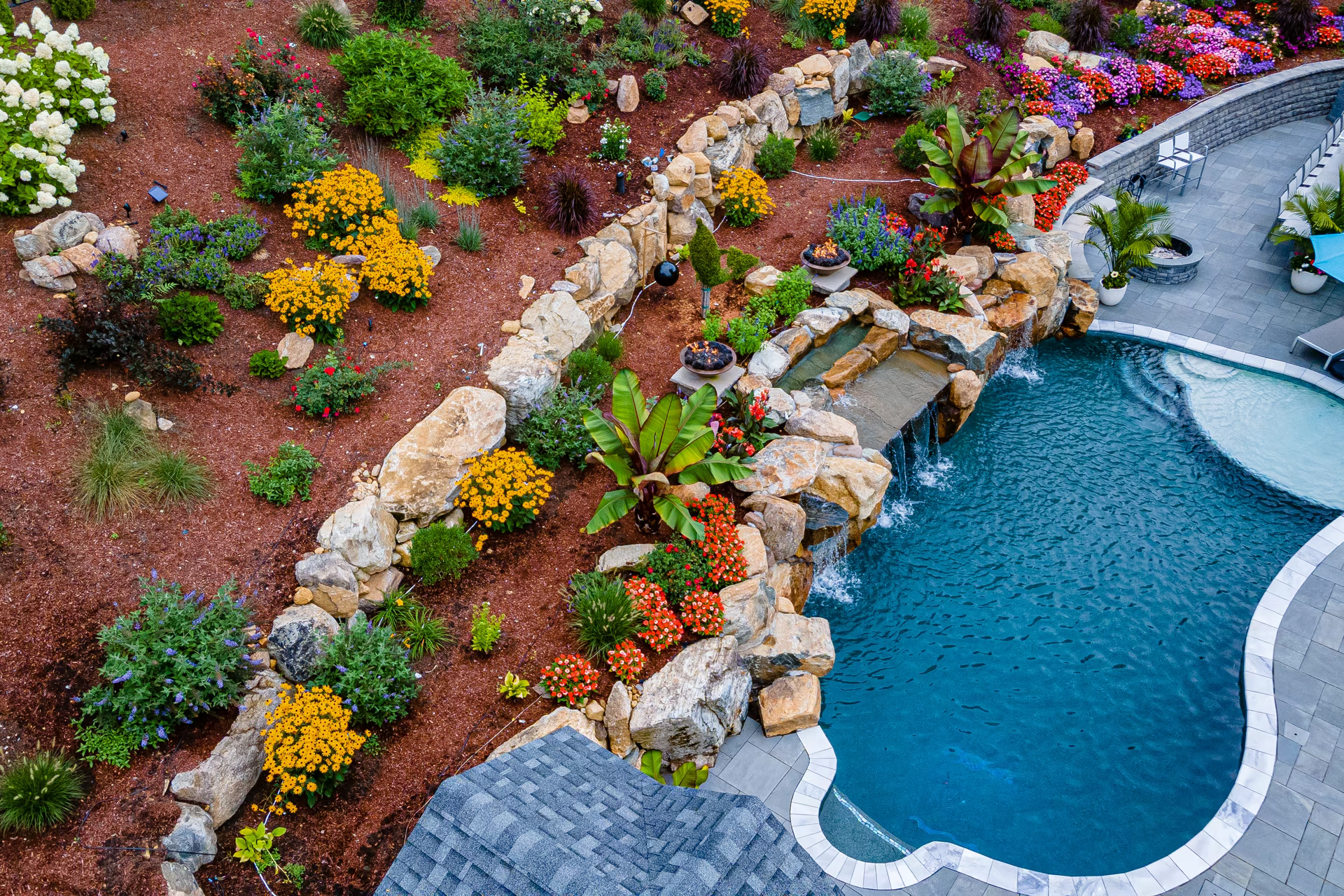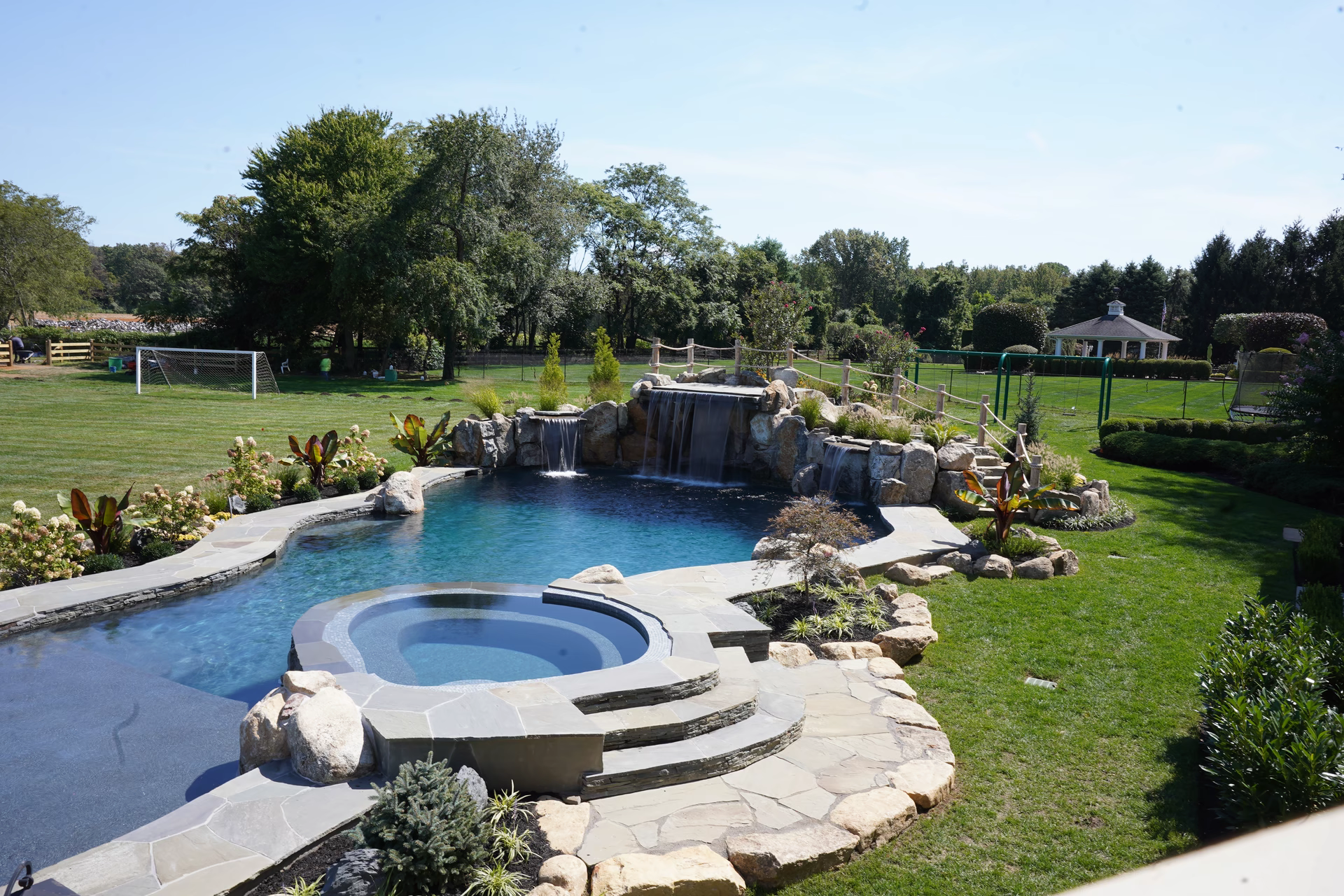 - Grotto Dimensions: 5′ Wide Waterfall Across Corner