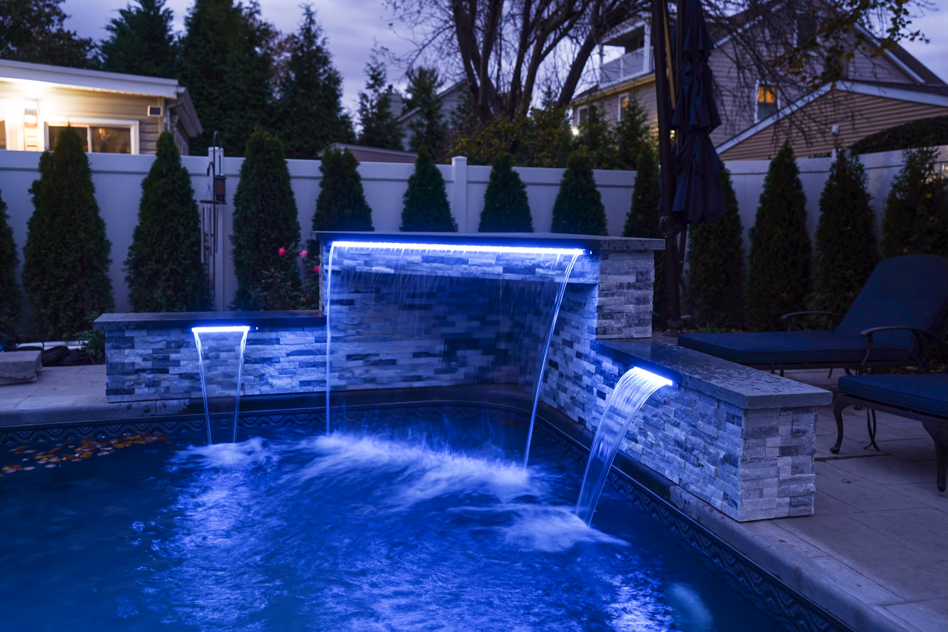 - (1) 60″ (Non LED) Waterfall, (2) 12″ (Non LED)Waterfalls