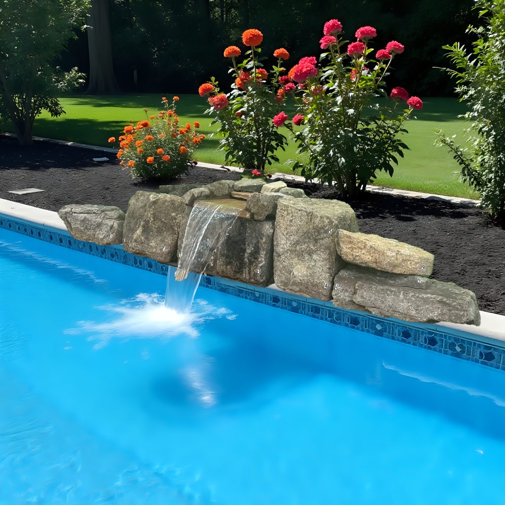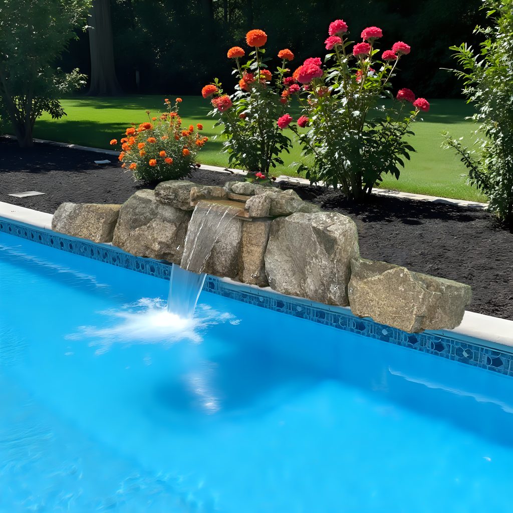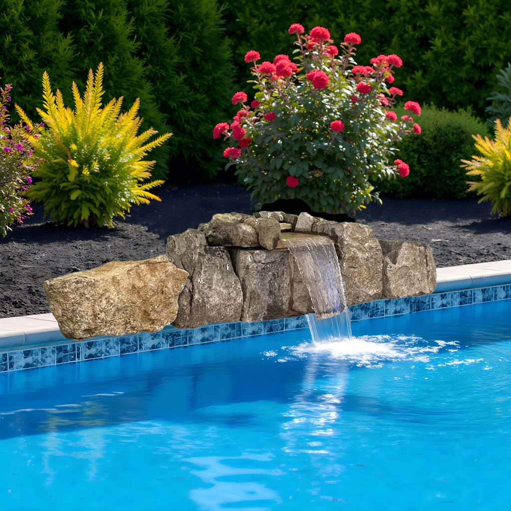 Natural stone waterfall kits featuring realistic rock textures and organic designs