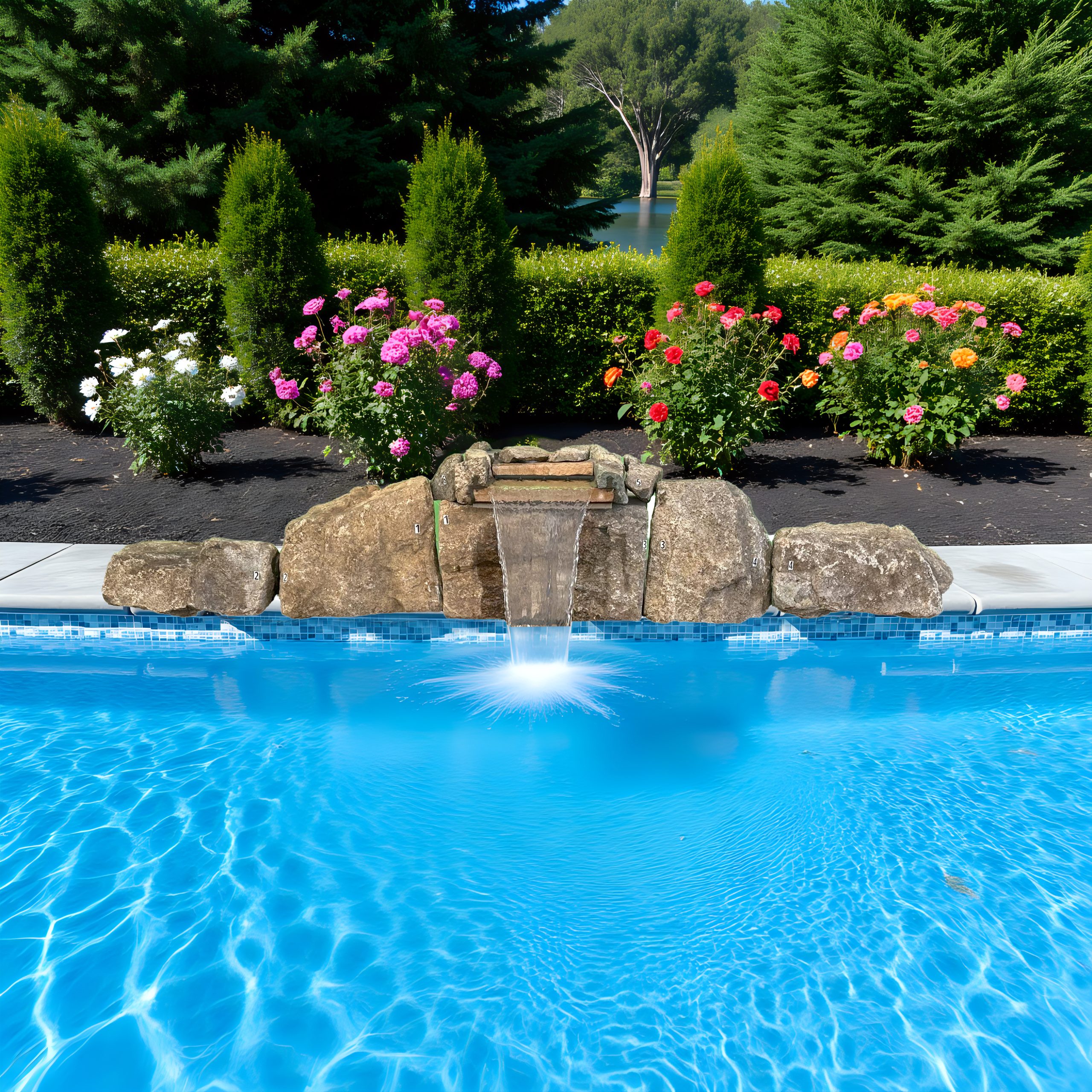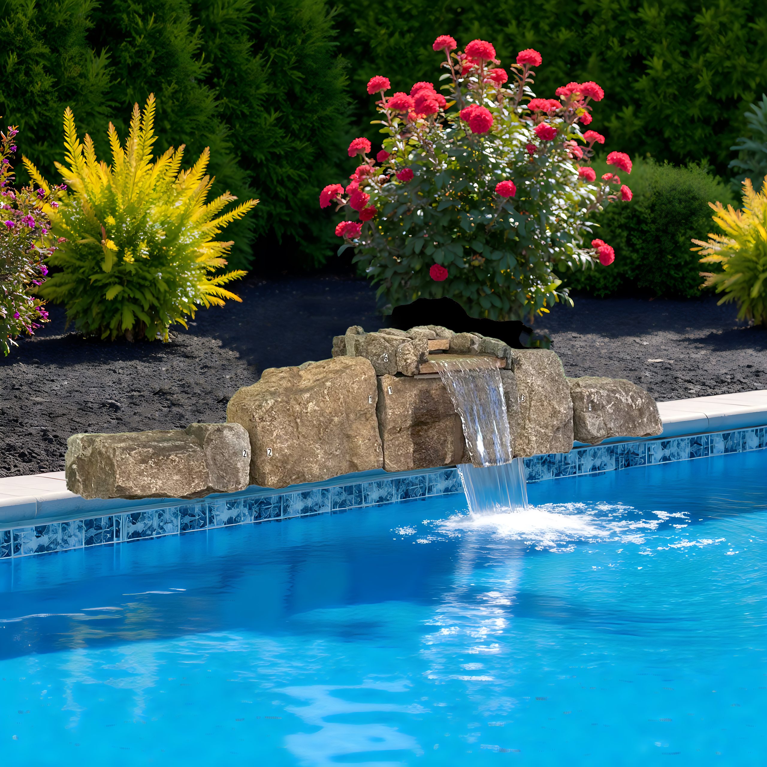 1.5′ high x 10′ wide Genesis Waterfall Kit featuring a single 12″ wide waterfall.
